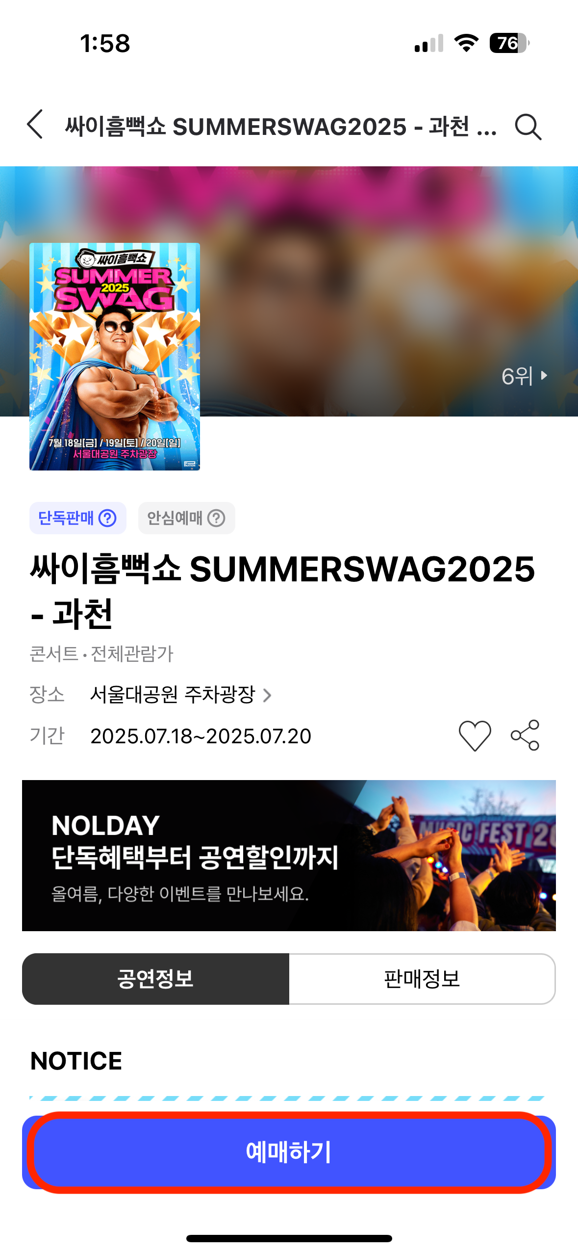 ✅ 취소표로 싸이 흠뻑쇼 가는 법