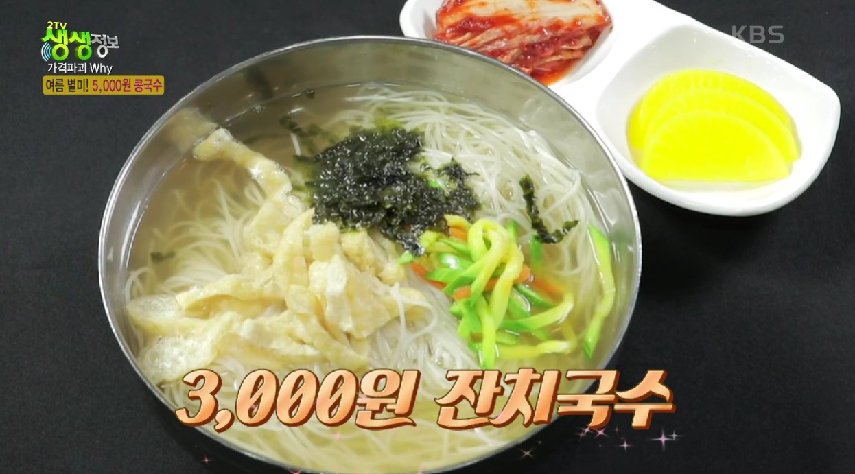 물가가 치솟은 요즘, 5천 원 이하의 한 끼는 찾아보기 힘든데요. 이곳은 콩국수를 비롯해 비빔국수, 잔치국수, 김밥까지 모두 가성비 끝판왕 가격을 자랑합니다.