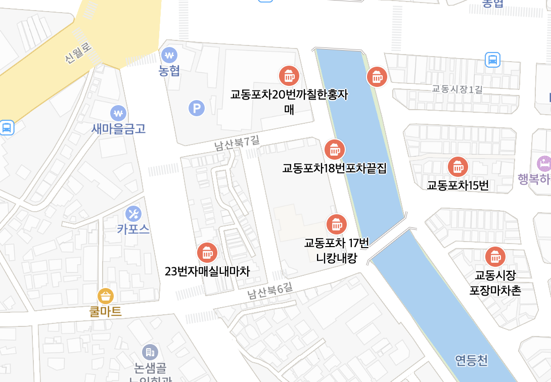 - 운영 시간: 대부분 포차는 오후 5시 ~ 자정까지 운영 (포차별로 상이)