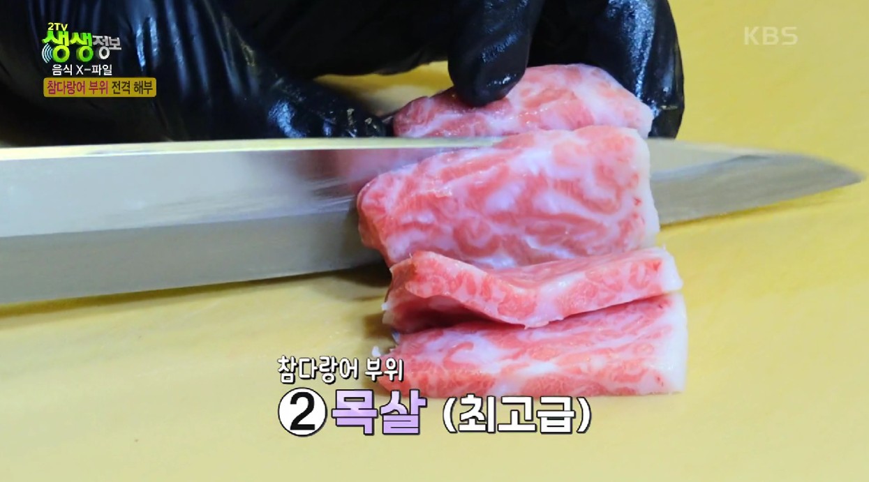 - 참다랑어, 눈다랑어 등 고급 부위부터 배꼽살, 대뱃살, 가마도로까지