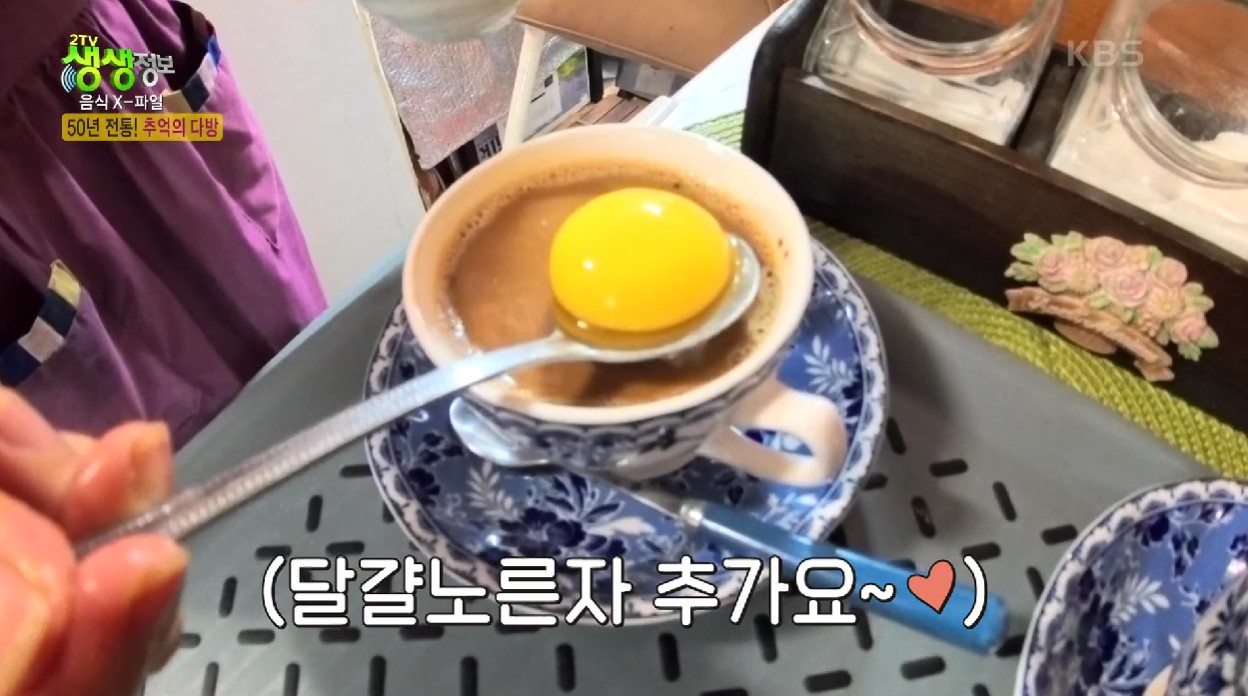 - 옛날식 다방커피를 즐길 수 있는 공간 커피에 노른자!