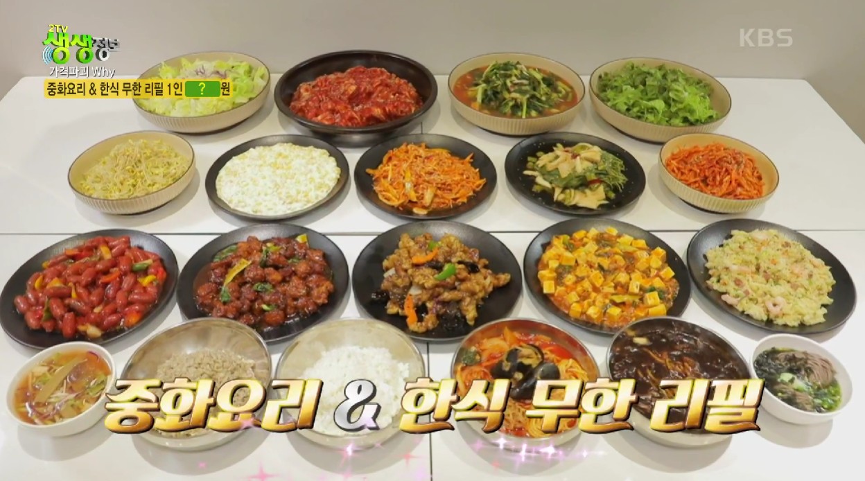 단돈 9,900원으로 중화요리와 한식을 무한 리필로 즐길 수 있는 가성비 맛집이 소개되었습니다.
