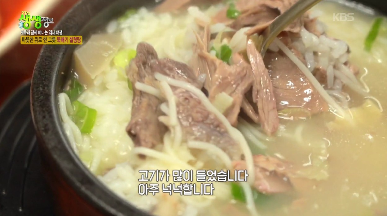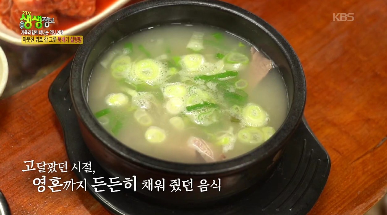 맑고 진한 소뼈 국물에 부드러운 고기, 적당히 익은 김치와 깍두기가 더해져 정갈한 한 끼를 완성합니다. 방송에서도 “오랜 세월 한결같은 맛”이라는 평가를 받았습니다.