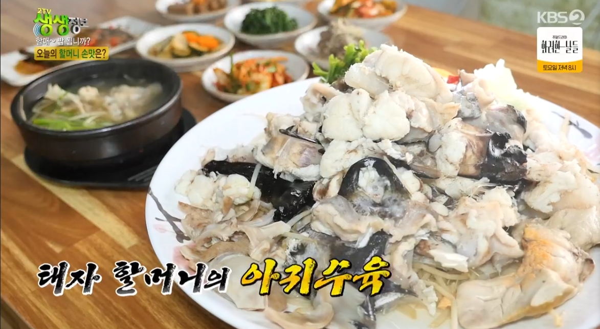 KBS 2TV 생생정보 2356회(2025년 8월 14일 방영) ‘할매~ 밥 됩니까?’ 코너에서 소개된 부산 기장의 숨은 맛집 수향아구찜. 이곳은 태자 할매의 아귀수육으로 유명하며, 특히 방송을 통해 소개된 후 현지인뿐 아니라 관광객들에게도 큰 사랑을 받고 있습니다.